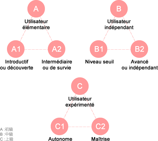 当校ではフランス国家および各国多数の公式機関から認定を受けた資格証明試験を実施しています。 これらの資格証明試験は指標となるCECRL−外国語教育のための欧州評議会設定標準語学習得レベルに則しています。 当校で実施されている資格証明試験はDELF DALF とTCFという2種類です。下記でそれぞれレベルごとの簡略な図表をご覧下さい。